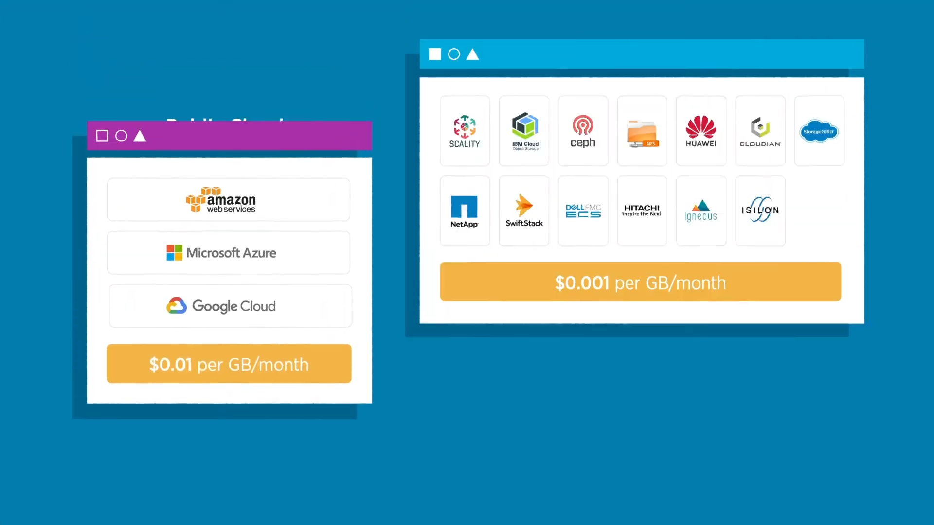 (Timestamp: 28s) The side-by-side comparison of "Public Clouds" and "Private Clouds (On-Premises)" was a key strategic decision to create immediate clarity.